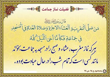 برگزاری مرتب نماز جماعت مغزب و عشاء و لزوم همکاری و مشارکت همه اهالی محترم